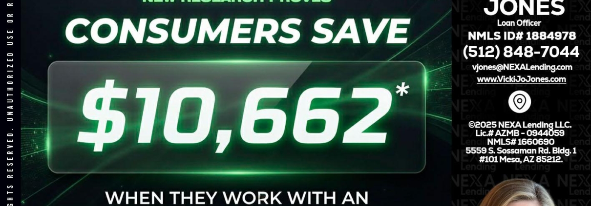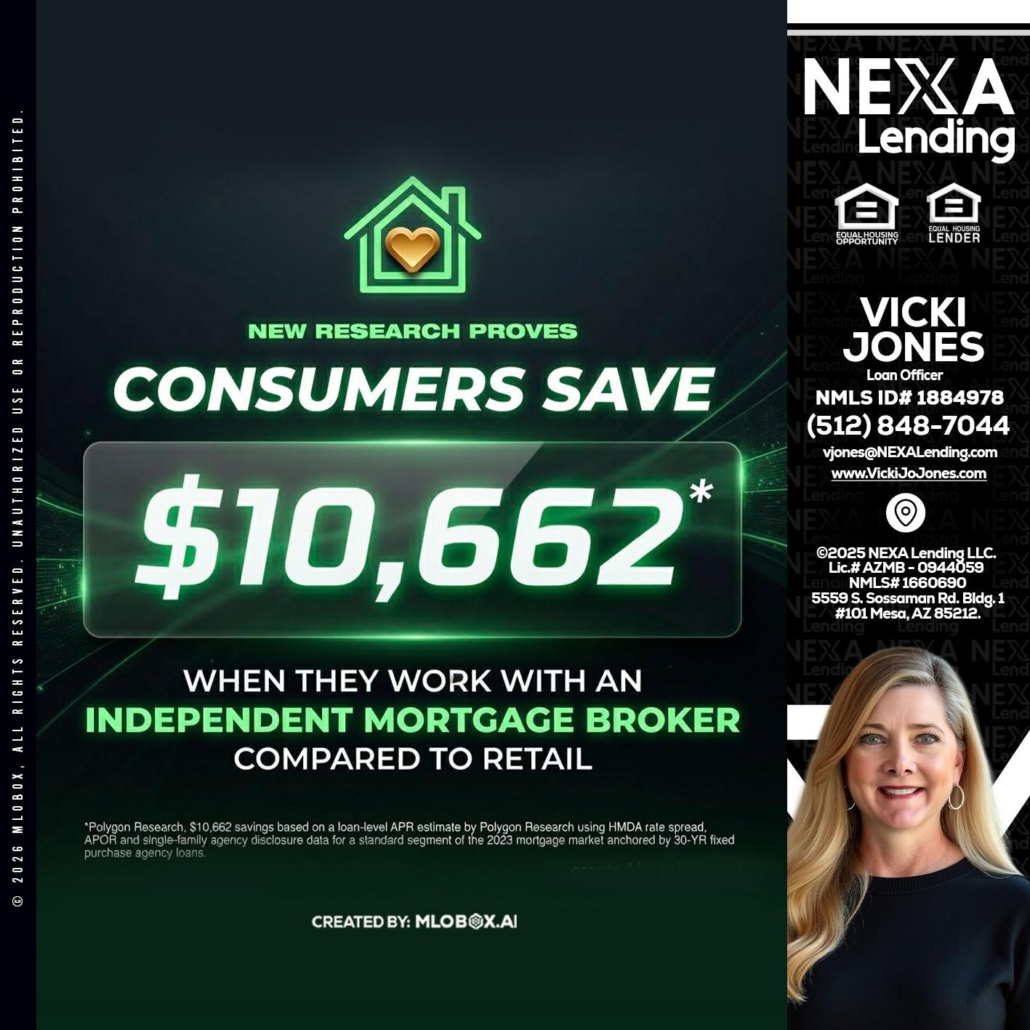 Hi, my name is Vicki Jones. I’m a Loan Officer with NEXA Lending LLC., offering personalized mortgage solutions, fast customized quotes, great rates and service with integrity.