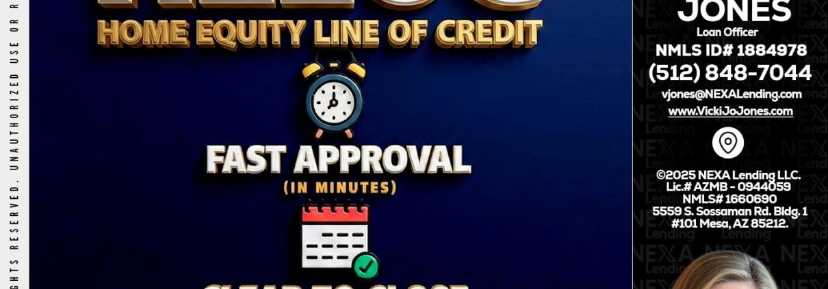 Hi, my name is Vicki Jones. I’m a Loan Officer with NEXA Lending LLC., offering personalized mortgage solutions, fast customized quotes, great rates and service with integrity.