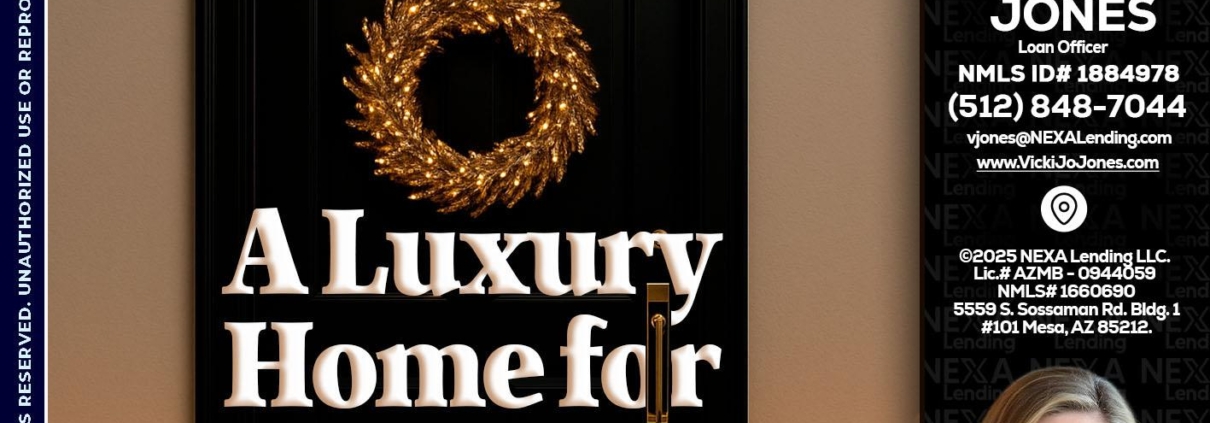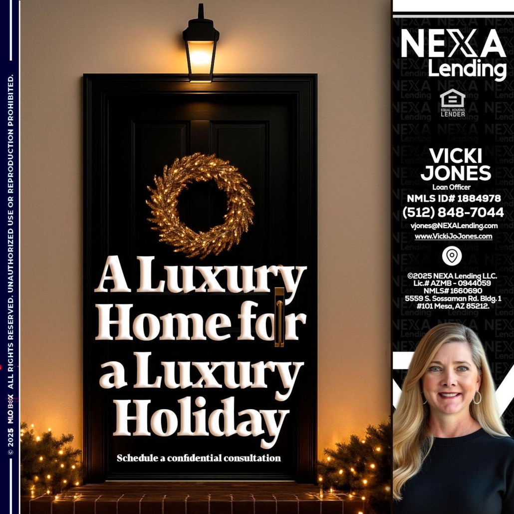 Hi, my name is Vicki Jones. I’m a Loan Officer with NEXA Lending LLC., offering personalized mortgage solutions, fast customized quotes, great rates and service with integrity.