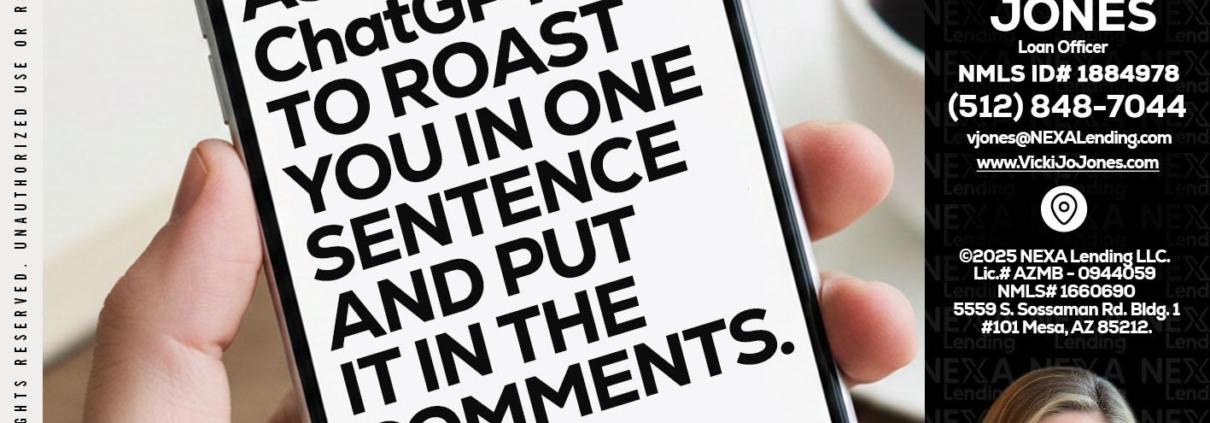 Hi, my name is Vicki Jones. I’m a Loan Officer with NEXA Lending LLC., offering personalized mortgage solutions, fast customized quotes, great rates and service with integrity.