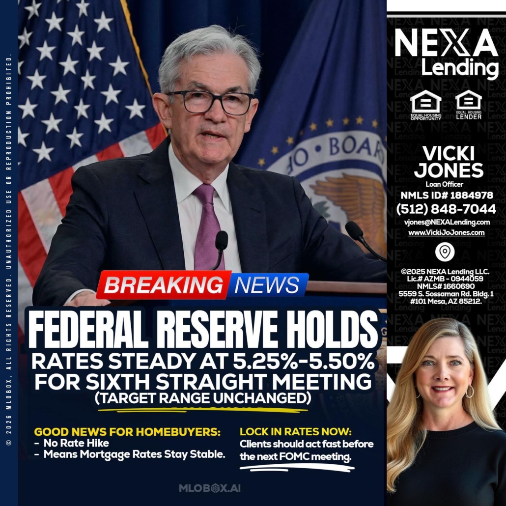 Hi, my name is Vicki Jones. I’m a Loan Officer with NEXA Lending LLC., offering personalized mortgage solutions, fast customized quotes, great rates and service with integrity.