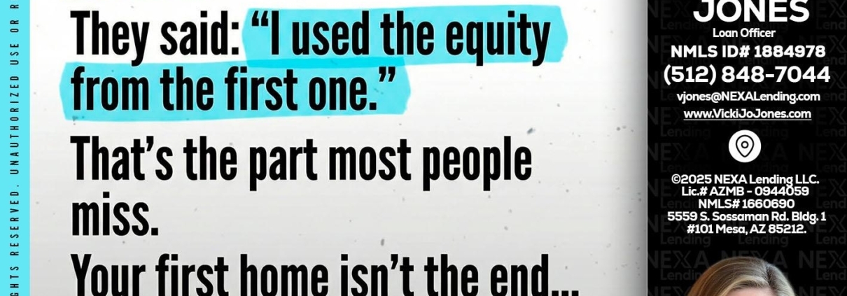 Hi, my name is Vicki Jones. I’m a Loan Officer with NEXA Lending LLC., offering personalized mortgage solutions, fast customized quotes, great rates and service with integrity.