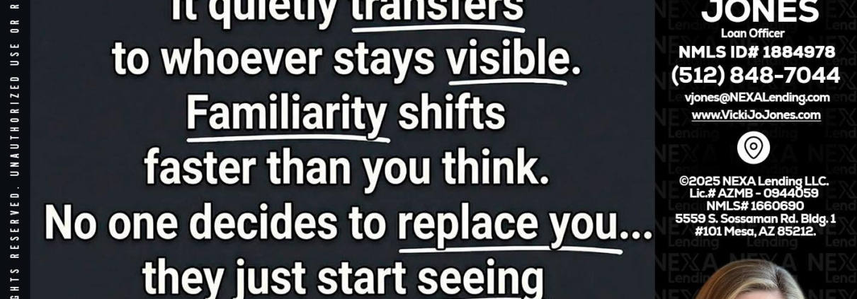 Hi, my name is Vicki Jones. I’m a Loan Officer with NEXA Lending LLC., offering personalized mortgage solutions, fast customized quotes, great rates and service with integrity.