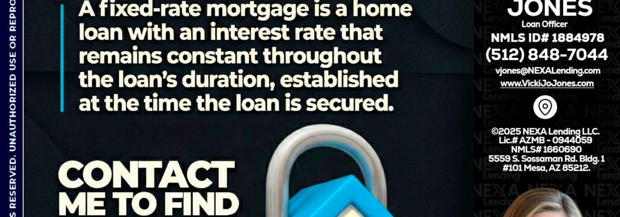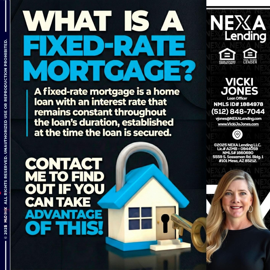 Hi, my name is Vicki Jones. I’m a Loan Officer with NEXA Lending LLC., offering personalized mortgage solutions, fast customized quotes, great rates and service with integrity.