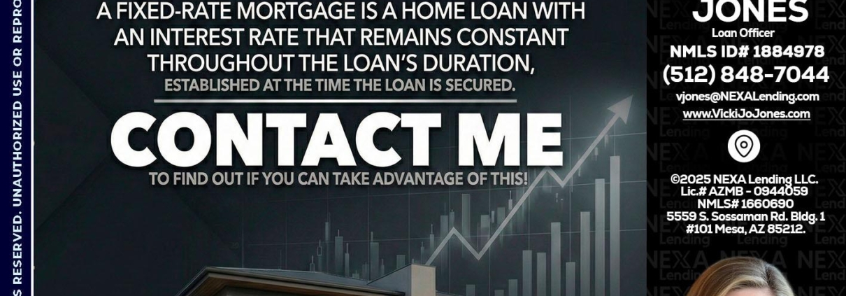 Hi, my name is Vicki Jones. I’m a Loan Officer with NEXA Lending LLC., offering personalized mortgage solutions, fast customized quotes, great rates and service with integrity.