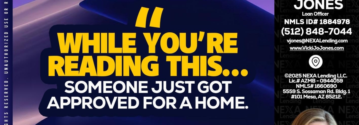 Hi, my name is Vicki Jones. I’m a Loan Officer with NEXA Lending LLC., offering personalized mortgage solutions, fast customized quotes, great rates and service with integrity.