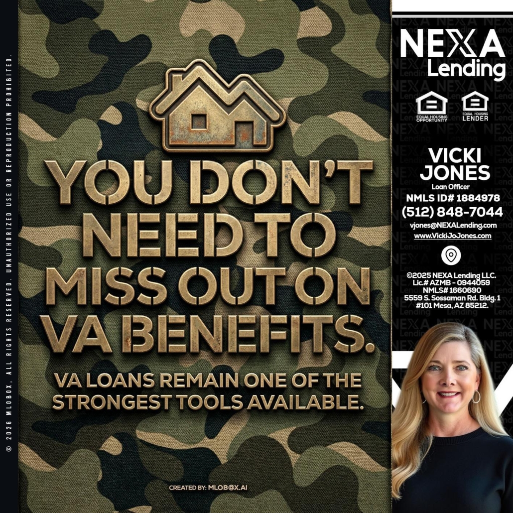 Hi, my name is Vicki Jones. I’m a Loan Officer with NEXA Lending LLC., offering personalized mortgage solutions, fast customized quotes, great rates and service with integrity.