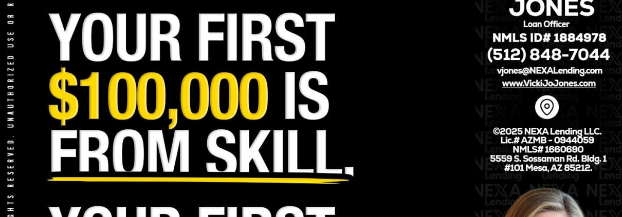 Hi, my name is Vicki Jones. I’m a Loan Officer with NEXA Lending LLC., offering personalized mortgage solutions, fast customized quotes, great rates and service with integrity.